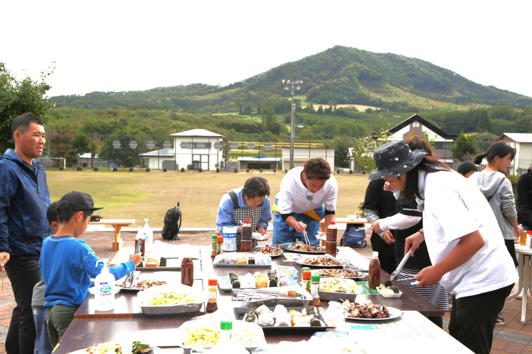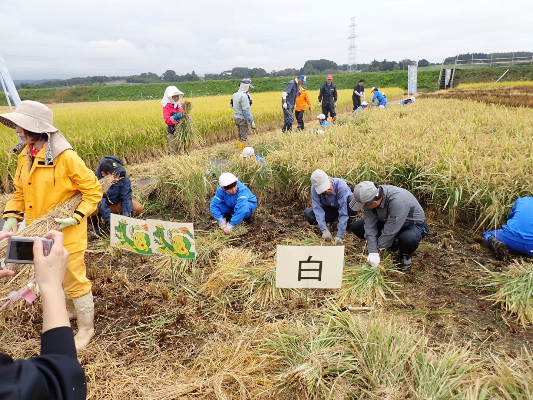 また、浮島地区の田んぼアートは収穫の際に一般参加者を募集します!2025年は合計約100人の参加があり、これまでに青森や北上などからもお越しいただいています。お米の収穫後は、地元の方々と一緒に岩手町産の食材を使った収穫祭(バーベキュー!)をします。